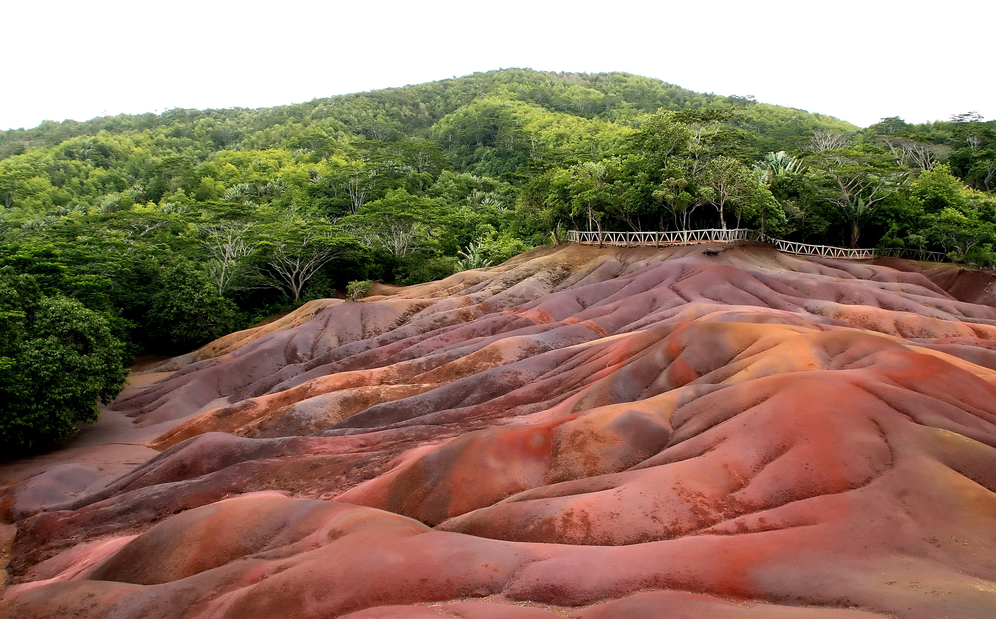 Le Morne ragt 556 Meter als schwarzer Vulkanfelsen aus türkisfarbenem Wasser – wenn du hochsteigt, liegt dir die gesamte Südwestküste zu Füßen. Vor der Küste spielt der Unterwasser-Wasserfall mit deiner Wahrnehmung: Sandverwirbelungen und Strömungen zeichnen ein Bild, als würde der Ozean in einen Abgrund stürzen – aus dem Helikopter spektakulär. Bel Ombre versteckt sich zwischen Le Morne und Souillac, grüner, wilder, mit Wanderpfaden durch Zuckerrohrfelder. Die siebenfarbige Erde bei Chamarel schimmert in Rot, Braun, Violett – vulkanische Mineralien malen abstrakte Muster in den Boden, so unwirklich, dass du zweimal hinschaust. Daneben fällt der Chamarel-Wasserfall spektakulär 83 Meter senkrecht in den Wald.