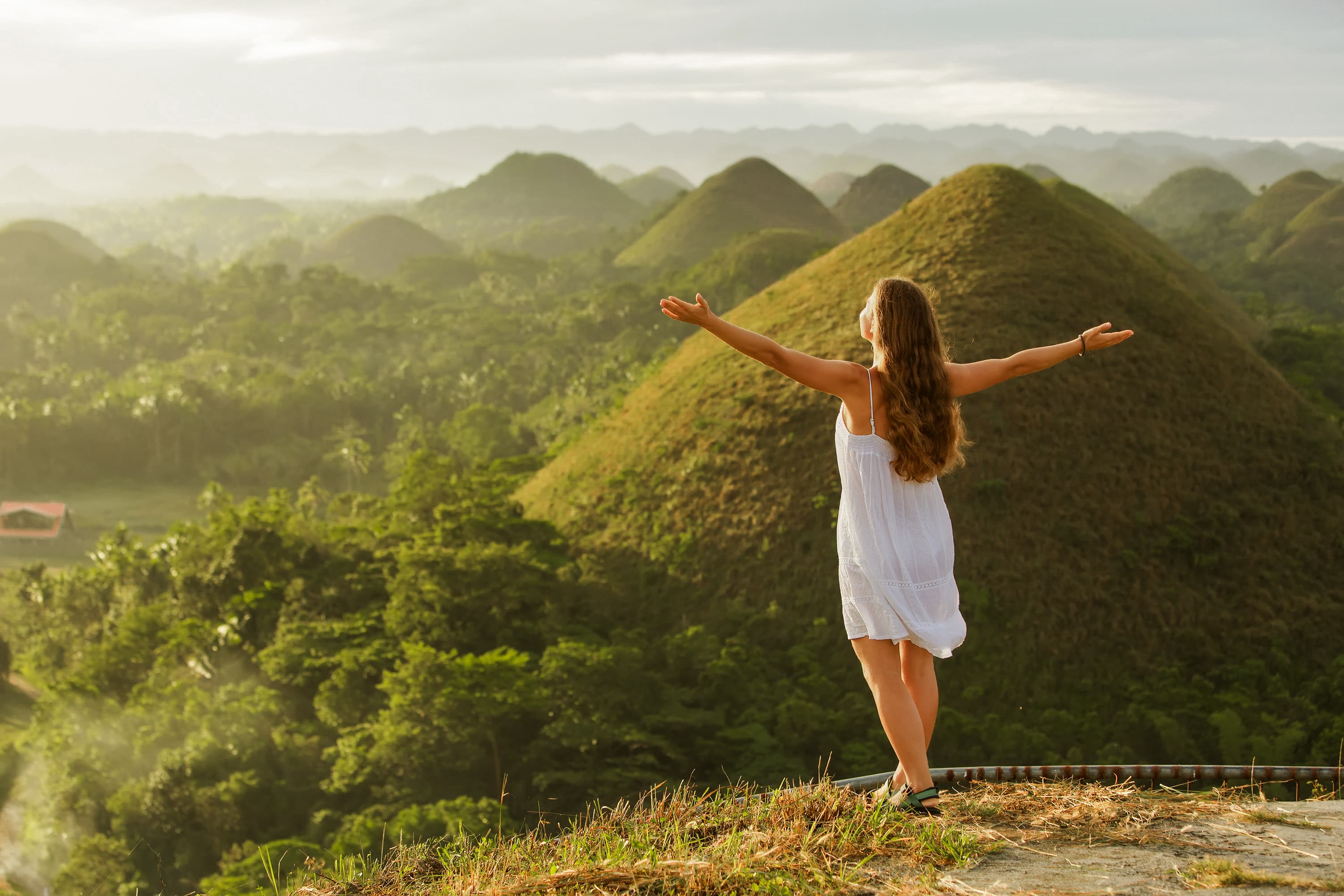 Hupen, Garküchen, alte Mauern und Glasfassaden liegen in Cebu City dicht beieinander, der Alltag läuft schnell und ungefiltert. Nur wenige Kilometer weiter wechseln Verkehr und Beton gegen Dschungelgrün, Wasserfälle und Küstenstraßen mit freiem Blick aufs Meer. Bohol und die vorgelagerte Insel Panglao sind echte Allrounder. Hier warten Postkartenstrände wie Alona Beach oder Dumaluan Beach – perfekt zum Tauchen, Chillen und Sonnen. Im Landesinneren beeindruckt Bohol mit den weltberühmten Chocolate Hills: hunderte grasbewachsene Kegel, die in der Trockenzeit schokobraun leuchten. Dazu: Flussfahrten, Tarsier-Begegnungen und Dschungelpfade.
